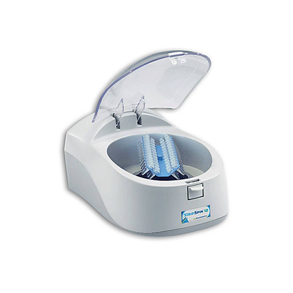 The StripSpin 12 Mini Centrifuge from Benchmark is the only mini centrifuge designed for centrifugation of 12 position PCR strips. With a fixed speed that produces 2,000 xg, this centrifuge is perfect for quick spin downs. Simply close the lid and the unit quickly ramps up to 5,500 rpm. Open the lid, and the Rotor quickly decelerates for easy removal of samples.